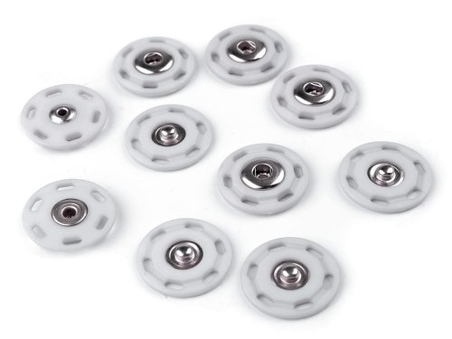 Designové plastové patentky využijete jako zapínání na tašky, [lehčí svetry] nebo mikiny. Okraje mají lemované dírkami, kterými je pohodlně našijete na látku.