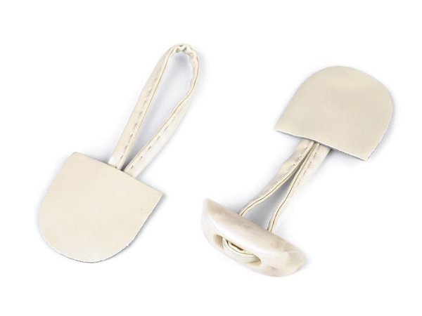Zapínání z eko kůže působí elegantně. Využijete ho na kabáty, svetry, saka nebo kožichy. Je vhodné také pro šití duffle coat. Zapínání může být rozlepené, což není důvod k reklamaci - jedná se o polotovar, který je nutno prošít.