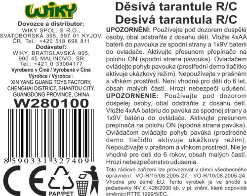 Baterie nejsou součástí balení - 4xAA tarantule, 1x9V ovladač.