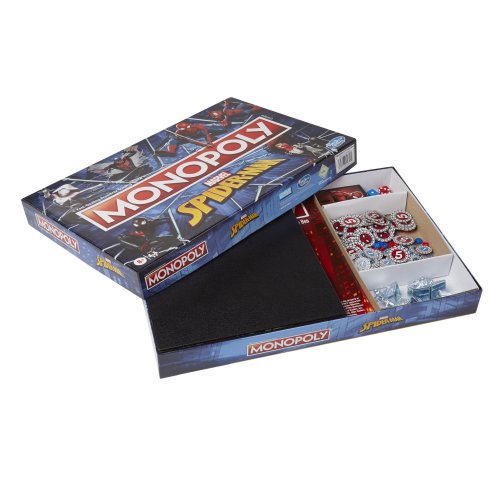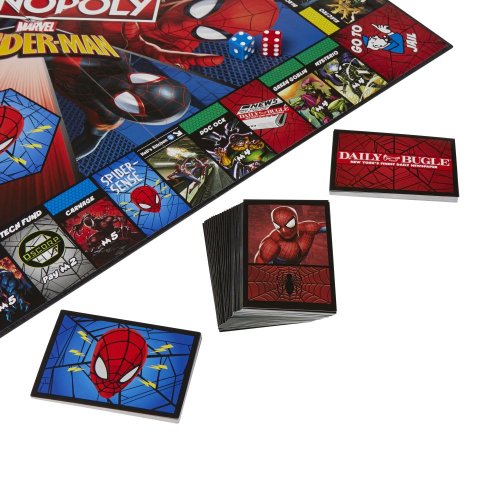 Vrhněte se do akce s touto edicí klasické deskové hry Monopoly od Marvel Spider-Man. Hráči si dokážou představit, že se obléknou jako oblíbený superhrdina Marvel a ochrání New York City před super padouchy. Monopolní žetony představují šest hrdinů z celého Spider-Man Universe. Hráči mohou využít zkratky metrem, uchopit Symbol velké odpovědnosti a odemknout jedinečnou schopnost superhrdiny a použít karty Daily Bugle k vymýšlení proti soupeřům. Rozměr balení cca 40 × 27 × 4,5 cm. Věk 8+