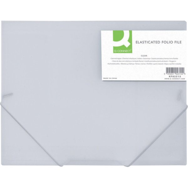 Průhledné desky na spisy s gumičkou Materiál: polypropylen Kapacita cca 300 listů Množství v originálním balení: 24 ks Formát: A4 Barva: transparentní mléčná