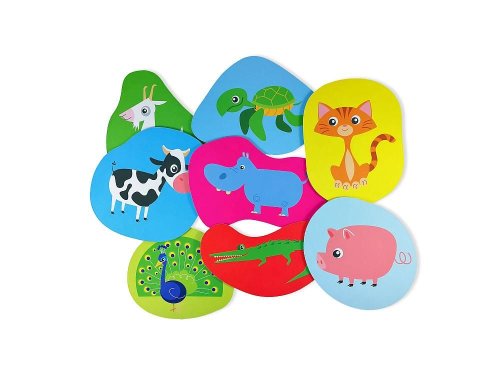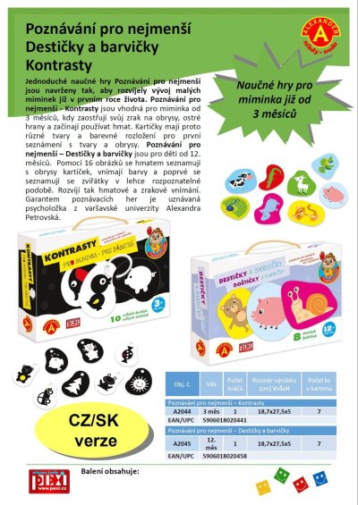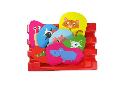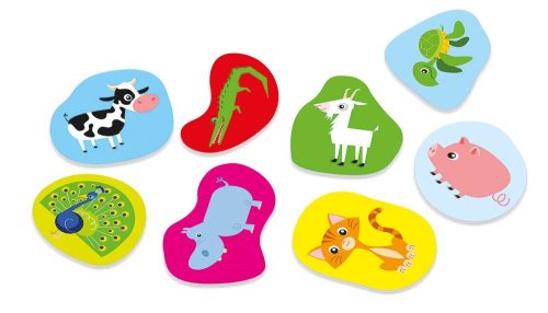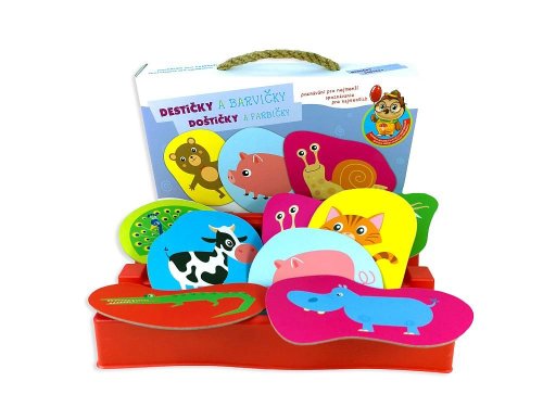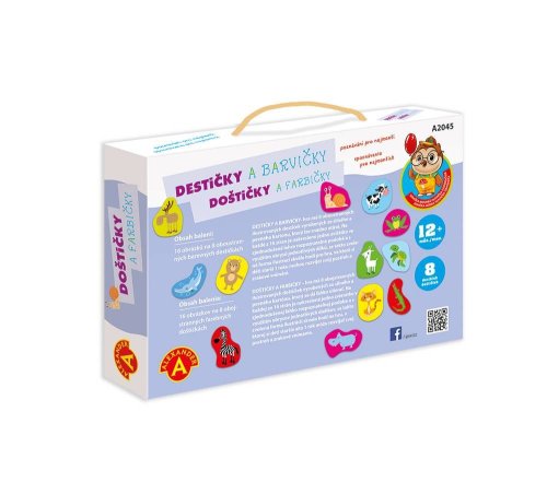Destičky a barvičky jsou pro děti od 12. měsíců. Pomocí 16 obrázků se hmatem seznamují s obrysy kartiček, vnímají barvy a poprvé se seznamují se zvířátky v lehce rozpoznatelné podobě. Rozvíjí tak hmatové a zrakové vnímání.