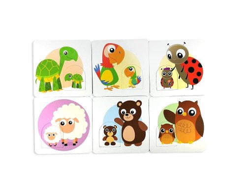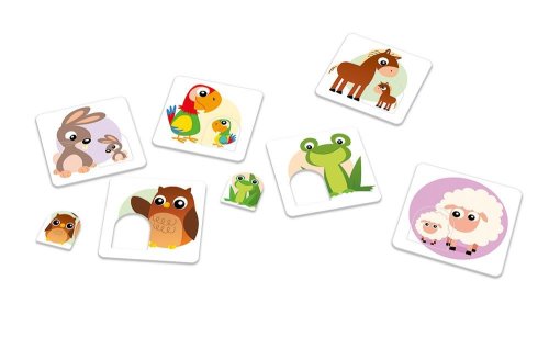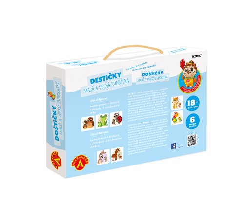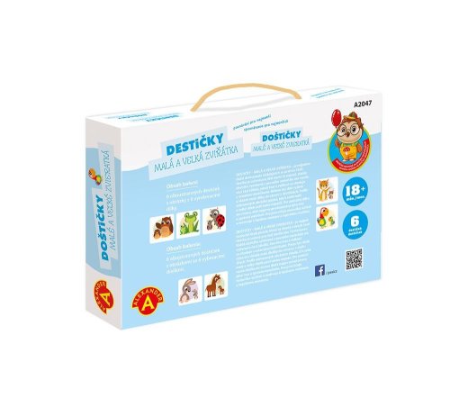 Malá a velká zvířátka principem je najít dvojice zvířátek a jejich mláďátek. Rozvíjí logiku, hmat a poznávání barev.