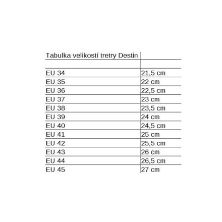 Běžecké tretry Zhenyu Destin jsou tou nejlepší volbou pro běžce středních a dlouhých tratí. Tvrdá a odolná podrážka s hřeby je přizpůsobená dráhovému povrchu, například tartanu nebo škváře a konstrukce těchto bot poskytuje běžci maximální kontakt nohy s povrchem. Boty mají zpevněnou špičku a jsou vyrobené z kombinace syntetické kůže pro zpevnění a prodyšné síťoviny. Boční pruhy slouží k dodatečnému zpevnění boty. Mají podrážku EVA po celé délce a umístění hřebů pro kvalitní a jistý odraz. Součástí balení je i sada náhradních hřebů, klička a sáček na boty.
