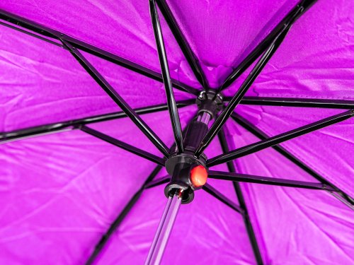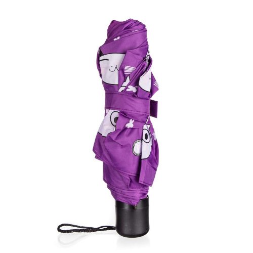Skládací deštník ve fialové barvě s kočičkami, slouží k ochraně proti dešti a přímému slunci. Je vyroben z nepromokavého materiálu polyester. Při namočení mění barvu obrázků.