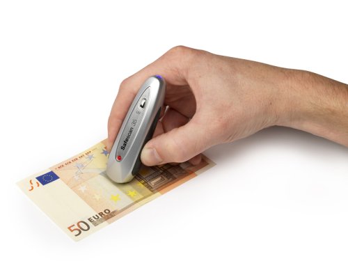 Kompaktní detektor Safescan k ověření pravosti bankovek třemi různými způsoby: UV, magnetické vlastnosti a bezpečnostní proužek.