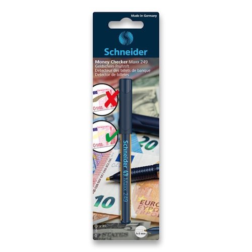 funkční detektor pro bankovky většiny hlavních měn s výjimkou kanadského dolaru, * orientační funkce detektoru, nutno používat se standardními detekčními metodami, * seříznutý hrot, * šíře stopy 1 nebo 3 mm, [zvýrazňovač 1-3 mm]