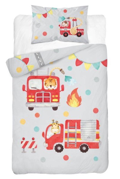 DETEXPOL Bambusové povlečení do postýlky Hasiči šedá 100/135, 40/60