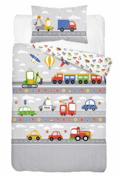 DETEXPOL Povlečení do postýlky Autíčka grey 100/135, 40/60