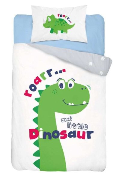 DETEXPOL Povlečení do postýlky Little Dino green 100/135, 40/60 Dětské bavlněné povlečení do postýlky, motiv peřiny je z každé strany jiný, zapínání na zip, praní na 40°C Materiál: 100% Bavlna Rozměr: 1x 100/135, 1x 40/60 cm