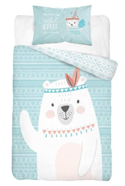 DETEXPOL Povlečení do postýlky Medvídek Indián green 100/135, 40/60 Dětské bavlněné povlečení do postýlky, motiv peřiny je z každé strany jiný, zapínání na zip, praní na 40°C Materiál: 100% Bavlna Rozměr: 1x 100/135, 1x 40/60 cm