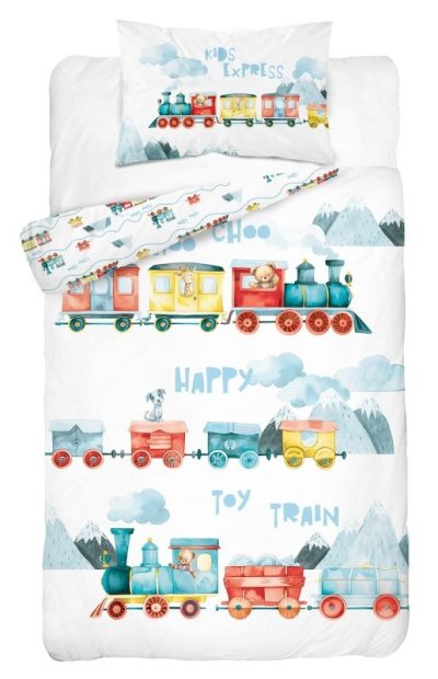 DETEXPOL Povlečení do postýlky Vláčky 100/135, 40/60 Dětské bavlněné povlečení do postýlky, motiv peřiny je z každé strany jiný, zapínání na zip, praní na 40°C Materiál: 100% Bavlna Rozměr: 1x 100/135, 1x 40/60 cm