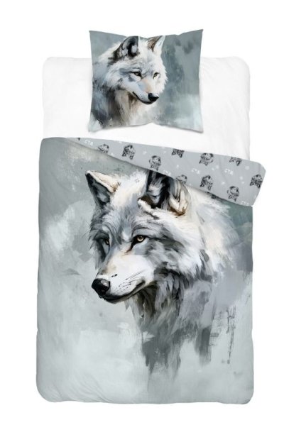 DETEXPOL Povlečení Vlk akvarel 140/200, 70/80 Bavlněné povlečení na velkou postel, zapínání na zip, povlečení má z každé strany jiný motiv, viz. foto, praní na 40°C Materiál: 100% Bavlna Rozměr: 1x 140/200, 1x 70/80 cm
