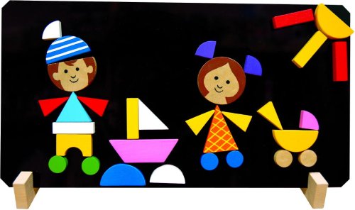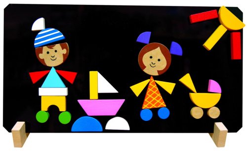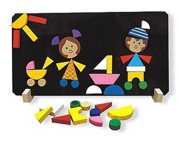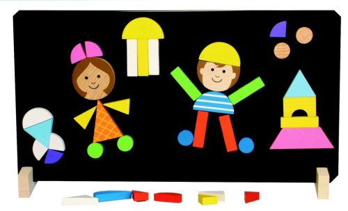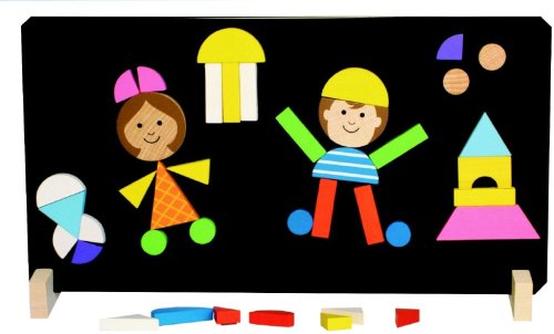 Obsah balení: Magnetická tabulka 310x165 mm, 2x dřevěný stojánek a 37 dřevěných dílků.
