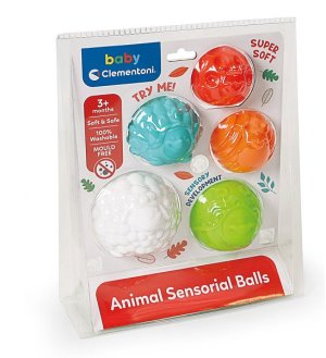 Sada pěti měkkých míčků ve tvaru zvířátek.