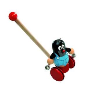 Krteček se při pohybu kolébá ze strany na stranu a cinká rolničkami, dřevo, 55 cmVhodné od 12 měsíců