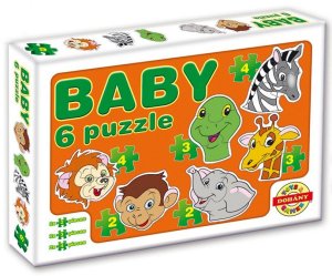 Obrysové progresivní puzzle pro malé děti s šesti motivy hlaviček zvířat ze safari.
