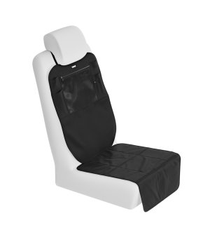 Komplexní ochrana Tento chránič sedadla s nastavitelnou výškou nabízí dvoudílné plné pokrytí – jedna část chrání zadní sedadlo, zatímco druhá se vejde pod dětskou autosedačku.