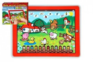 Tablet Moje první zvířátka seznamuje děti se zvířátky, se kterými se mohou setkat na farmě a učí je, jaký zvuk vydává kačenka, jaký kravička, jaký slepička a ostatní tradiční česká...