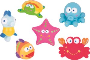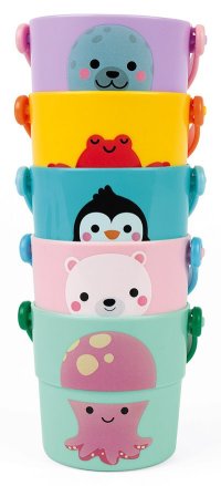 Barevné plastové kbelíky do vody s motivem zvířátek.