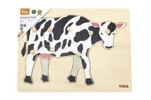 Dřevěná vkládačka s motivem krávy.Rozměr dřevěné desky cca 30 x 22,5 x 1 cm cm.Věk 18 měs+