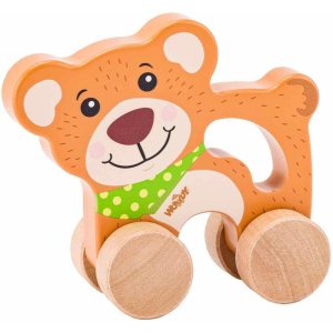 Medvěd WOODY Medvěd na kolečkách Dřevěná hračka na kolečkách s držadlem Její tvar umožňuje dětské ruce pohodlný a pevný úchop Design české návrhářky Věk 1+ Rozměry (VxŠxH) 12 x 13 x 5 cm