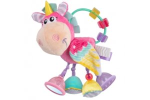 Vaše dítě si zamiluje naše růžové chrastítko ve tvaru jednorožce.