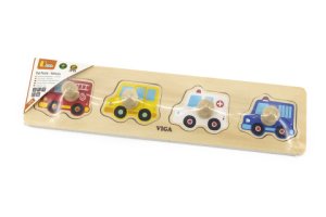 Dřevěná vkládačka pro nejmenší s motivem záchranářských aut.