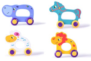 Kousátka jsou tvarovaná tak,aby byla snadno uchopitelná dětskou ručičkou, bez ostrých hran.Na tlapičce jsou zavěšeny plastové tvary v různých provedeních, ať už to ve tvaru kolečka, srdíčka, zvonečku …