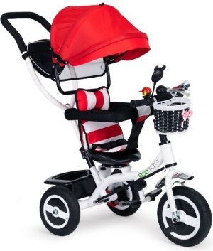 Bezpečná tříkolka s vodící tyčí a stříškou pro děti od 12 měsíců.