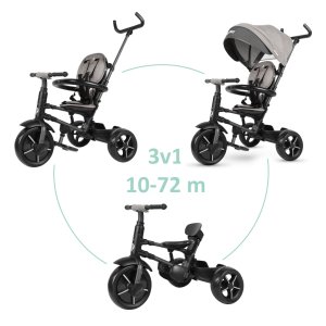 Multifunkční Tříkolka se stříškou CHIPOLINO Be Active se 2 různými způsoby použití - rodič tlačí dítě nebo dítě jede samo a řídí.