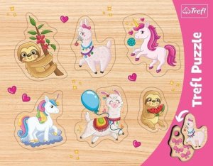 Vkládačka Jednorožci, lamy a lenochodi - Dítě se podle obrysů a tvaru snaží najít správný obrázek (rozvoj představivosti a logického myšlení), a umístit jej do správného otvoru (rozvoj jemné …
