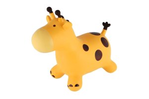 Gumové, pastelově růžové nafukovací skákadlo pro děti ve tvaru žirafy.