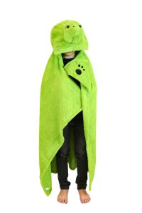 Zábavná, měkoučká, hřejivá deka s kapucí s motivem zvířátka a dvěma rohovými kapsami na ruce s motivem zvířecích tlapek.