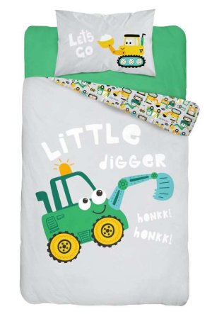 DETEXPOL Povlečení do postýlky Bagr zelený 100/135, 40/60 Dětské bavlněné povlečení do postýlky, motiv peřiny je z každé strany jiný, zapínání na zip, praní na 40°C Materiál: 100% Bavlna Rozměr: 1x 100/135, …
