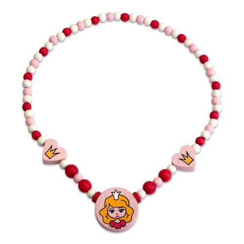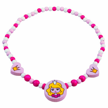 Náhrdelník z dřevěných korálků s obrázkem princezny a korunky, bude ozdobou každé malé slečny.