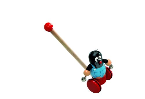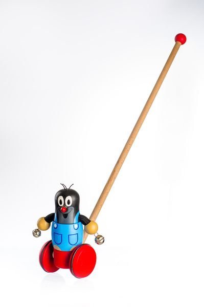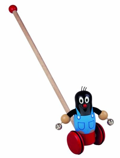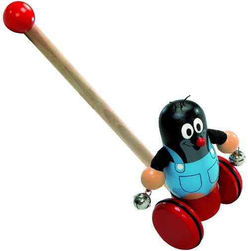 Strkadlo Krteček je dřevěná hračka na tyči, která se při pohybu kolébá ze strany na stranu a cinká rolničkami.