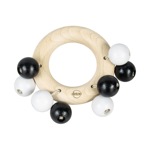 Dřevěné lehké chrastítko s černobílými kuličkami na šňůrce pomáhá rozvíjet jemnou motoriku rukou a je vhodné pro děti od 6ti měsíců. Výrobek splňuje požadavky EU na bezpečnost hraček. Průměr kroužku je 7 cm a je připevněn na ekologické papírové kartě. Hlavní vlastnosti: procvičuje jemnou motorikuvýrobek je zdravotně nezávadnýsplňuje všechny normy EU pro bezpečnost hračekprůměr kroužku je 7 cm a je připevněn na papírové kartěvyrobeno v České republice