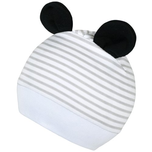 Bavlněná kojenecká čepička New Baby Panda pro miminka. Čepička je proužkovaná a má roztomilá ouška. Má široký lem. Čepička s moderním designem je vhodná pro holčičky i chlapečky. Složení: 100% bavlna.