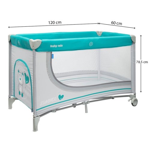 Praktická přenosná cestovní postýlka Baby Mix slouží nejen jako cestovní postýlka, ale taky jako ohrádka. Užijte si čas strávený s Vaším děťátkem kdykoli budete na dovolené nebo na cestách. I prarodiče si mohou užít přítomnost svých vnoučátek, i když už nemají dětskou postýlku. Díky jednoduchému skládacímu mechanismu postýlku rychle a snadno složíte, vložíte do přiložené praktické tašky s popruhy a pohodlně dáte do auta. Postýlka je velmi lehká, je opatřena kolečky s integrovanou brzdou, takže ji můžete snadno převézt do jiné místnosti, na balkon, terasu či zahradu.