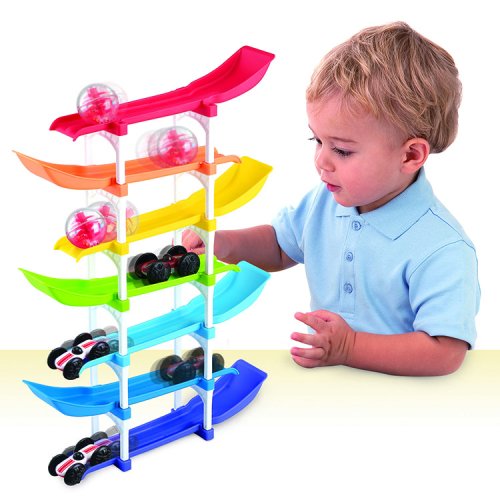 Dětská kuličková dráha, která rozvíjí dětskou motoriku. 3 barevné míčky, které dítě pouští z dráhy a sleduje jejich kutálení dolů.