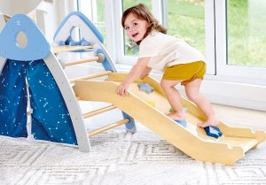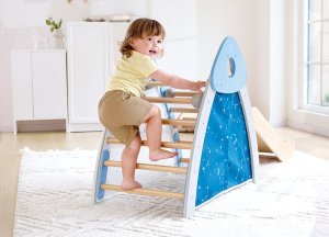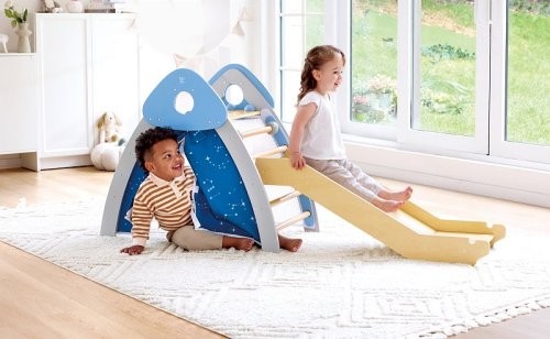 Objevte svět zábavy a pohybu s touto všestrannou prolézačkou Hape, která kombinuje čtyři různé herní prvky v jednom: skluzavku, lezeckou stěnu, stan a fotbalovou branku. Tento set je navržen tak, aby podporoval fyzický rozvoj, koordinaci a kreativitu dětí. S robustní konstrukcí a bezpečnými materiály je ideální pro vnitřní i venkovní použití. Vyrobený z vysoce kvalitního bukového dřeva, je bezpečný, pevný a navržený tak, aby vydržel roky radosti ze hry. Rozměry prolézačky cca: 79,2 x176,3 x 52,5 cm. Rozměry balení: 40,5 x 114 x 13 cm. Doporučený věk: 2-3 roky.