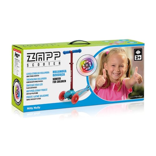 Abychom vyhověli potřebám našich malých závodníků, vytvořili jsme koloběžku ZAPP. Je ideálním řešením pro aktivní děti, které mají rády pohyb. Zapp je vyroben z kvalitních materiálů, je ideální na procházky nebo řádění kolem domu. Kovová konstrukce zaručuje odolnost výrobku. Koloběžka má navíc brzdu a blatník na zadním kolečku. Řízení a zatáčení pracuje na principu změny rovnováhy těla. Velkou výhodou koloběžky jsou 3 kola, které poskytnou stabilitu a bezpečnost. Děti potěší také, svítíci přední kola během jízdy.