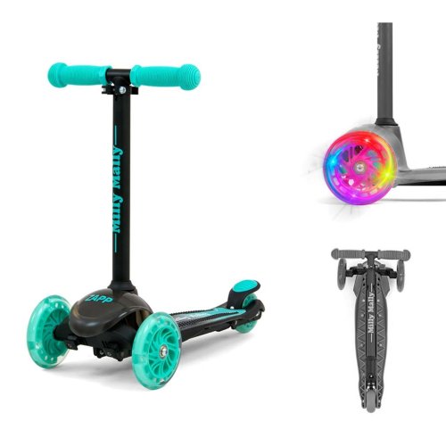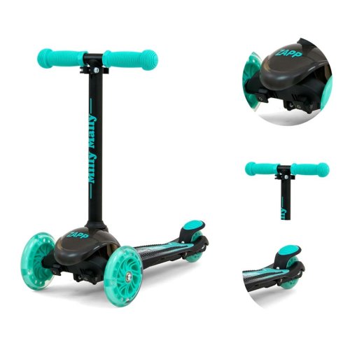 Abychom vyhověli potřebám našich malých závodníků, vytvořili jsme koloběžku ZAPP. Je ideálním řešením pro aktivní děti, které mají rády pohyb. Zapp je vyroben z kvalitních materiálů, je ideální na procházky nebo řádění kolem domu. Kovová konstrukce zaručuje odolnost výrobku. Koloběžka má navíc brzdu a blatník na zadním kolečku. Řízení a zatáčení pracuje na principu změny rovnováhy těla. Velkou výhodou koloběžky jsou 3 kola, které poskytnou stabilitu a bezpečnost. Děti potěší také, svítíci přední kola během jízdy.