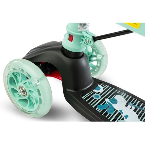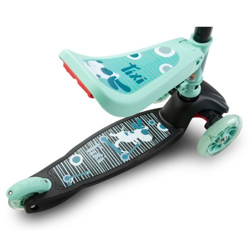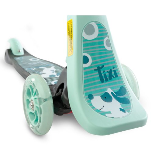 TIXI je moderní tříkolová koloběžka, která díky své konstrukci rozvíjí fyzickou zdatnost a rovnováhu dětí od 3 do 12 let s hmotností do 50kg. Je vybavená výškově nastavitelnou, stabilní rukojetí a sklopným sedákem, díky kterému si může dítě o váze do 20 kg odpočinout. Navíc má koloběžka svítící gumové kolečka napájené dynamem, které zvyšují pohodlí a bezpečnost.