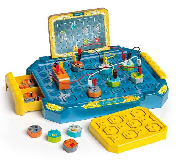 Cesta do světa elektřiny začíná s laboratoří na stavbu funkčních elektronických obvodů! S patentovanými moduly se vytváření elektrických obvodů promění ve skvělou zábavu! Preciznost správné montáže a kapacita funkčního obvodu pro autonomní učení se všem tajům elektroniky a zároveň zábavu. Poutavá hra, která stimuluje inteligenci dítěte při stavbě součástek a vytváření elektrických obvodů, které všechny fungují jinak. Kromě předmontovaných prvků má sada 18 modulů k sestavení a inovativní uzávěr, všechny založené na součástech italské výroby. Patentovaný montážní mechanismus, který je zaručeně originální. Elektronika rozsvítí světla a aktivuje senzory připojením modulů a vodičů naprosto bezpečným způsobem na speciálním pracovním stole. Obsahuje více než 20 elektrických obvodů s různou úrovní obtížnosti, 10 karet s dvěma tvářemi a podrobné materiály pro nalezení mnoha zdrojů inspirace. Rozměry balení: 45,1 x 31,1 x 7 cm. Věk: 8+