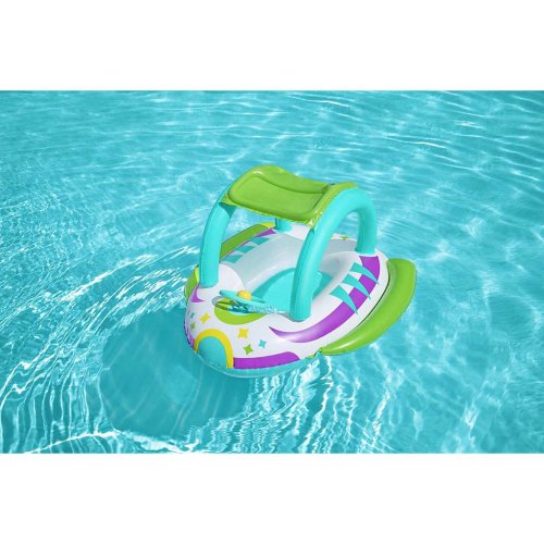 Dětský nafukovací kosmický člun Bestway. Krásný barevný dětský člun ve tvaru kosmické lodi se stříškou, která ochrání dítě před slunečními paprsky. Dovádění ve vodě milují všechny děti, proto dopřejte svým dětem pohádkové lenošení na vodě.