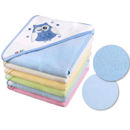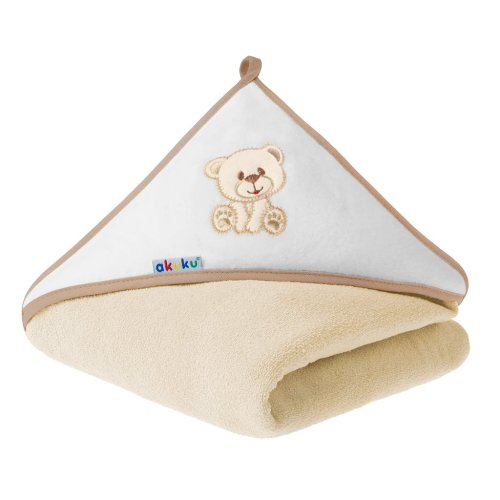 Dětská osuška Akuku s obrázkem a kapucí. Osuška je vyrobena z příjemného a měkkého materiálu. Vnitřní strana osušky je bavlněná, vnější fleecová. Rozměry: cca 100x100 cm. Složení: 100% bavlna.