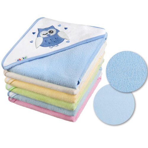 Dětská osuška Akuku s obrázkem a kapucí. Osuška je vyrobena z příjemného a měkkého materiálu. Vnitřní strana osušky je bavlněná, vnější fleecová. Rozměry: cca 80x80 cm. Složení: 100% bavlna.