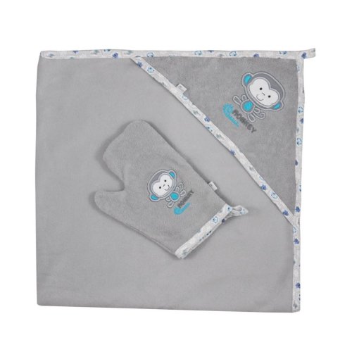 Dětská osuška Koala Jungle s kapucí a žínkou. Osušku zdobí krásný obrázek opičky a lem se vzorem. V balení je i praktická žínka. Osuška dítě po koupání zahřeje a kapuce chrání mokrou hlavičku dítěte před chladem. Rozměry: osuška: cca 90x90 cm. Složení: 85% bavlna, 15% polyester.